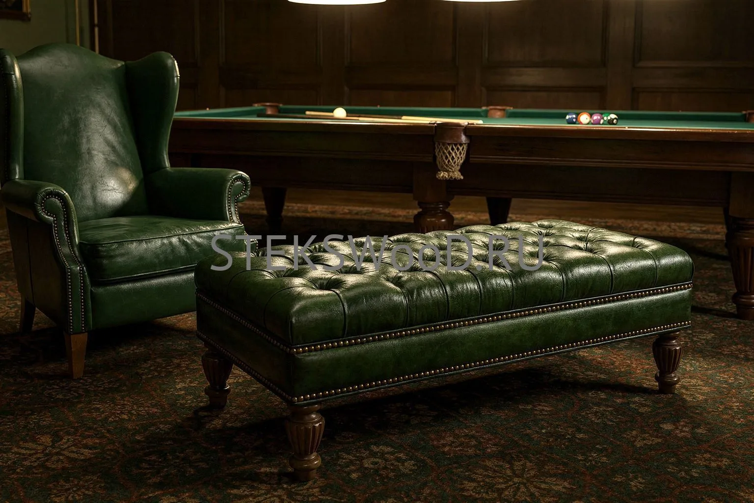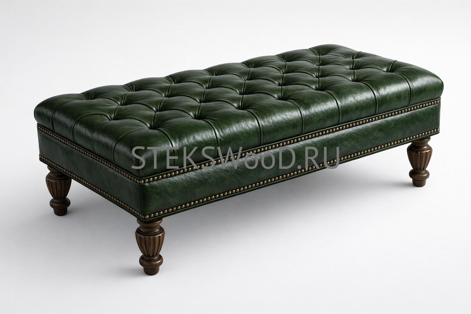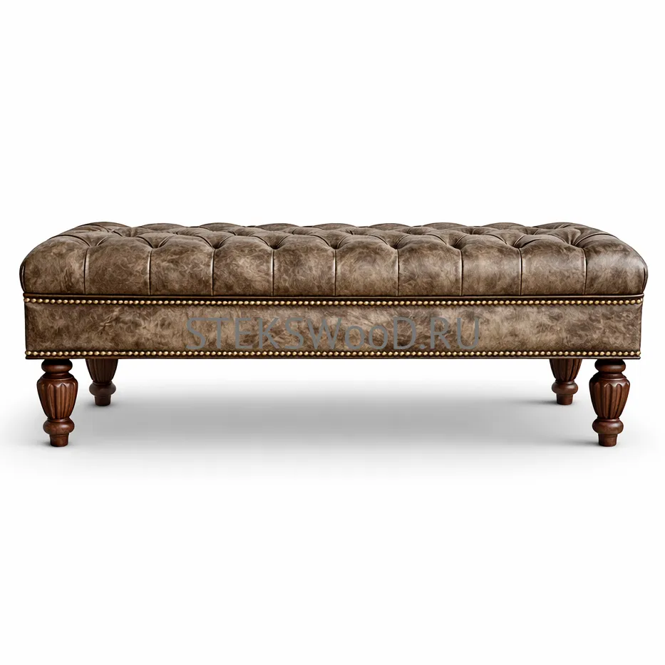 Банкетка из натуральной кожи "ОЛДГРЕЙ", длинной 120 см