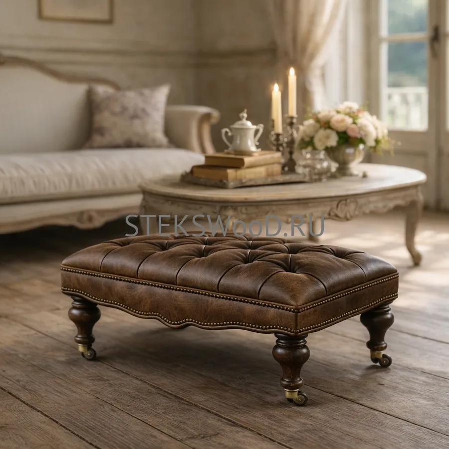 Банкетка на колёсиках "ВЕЙВ", натуральная кожа