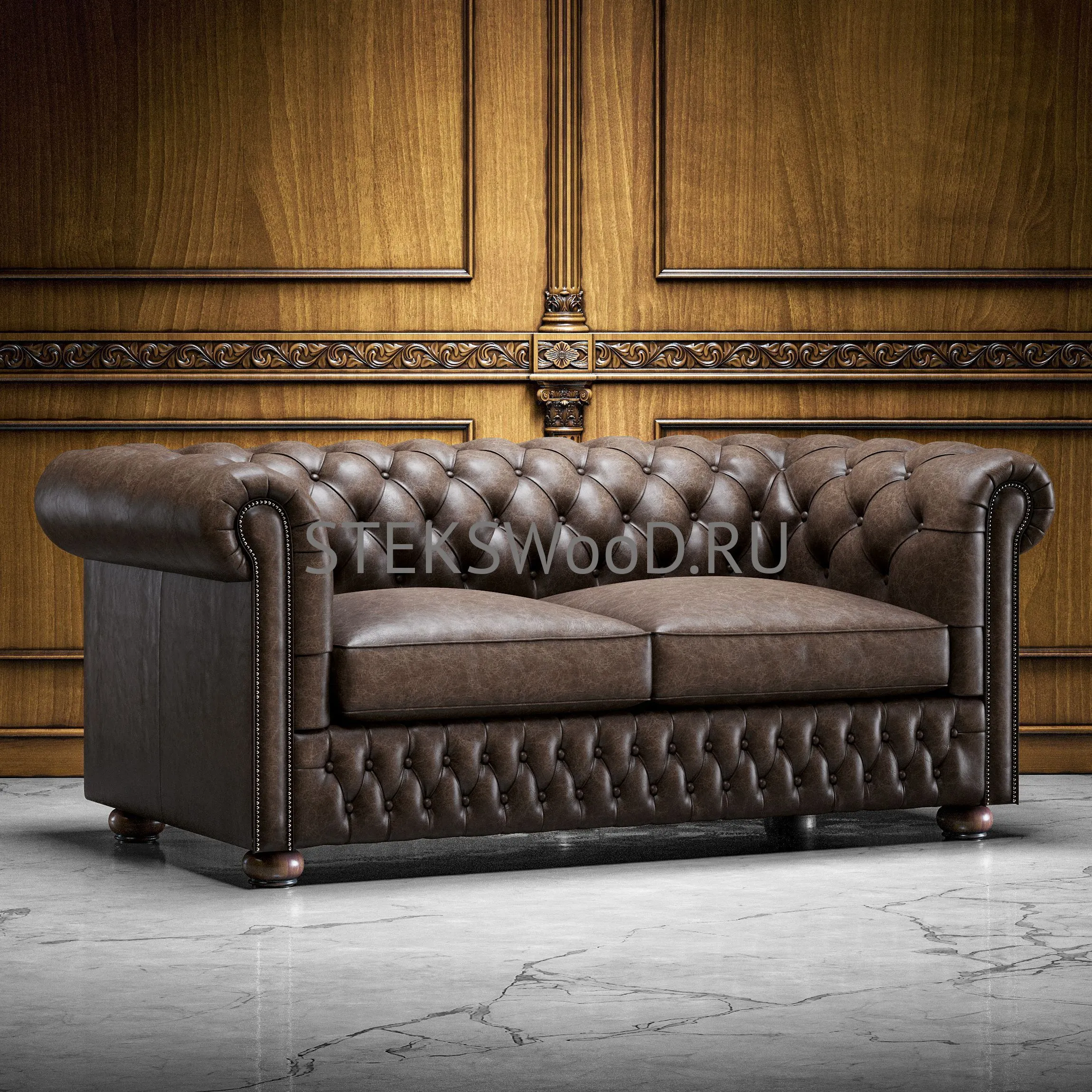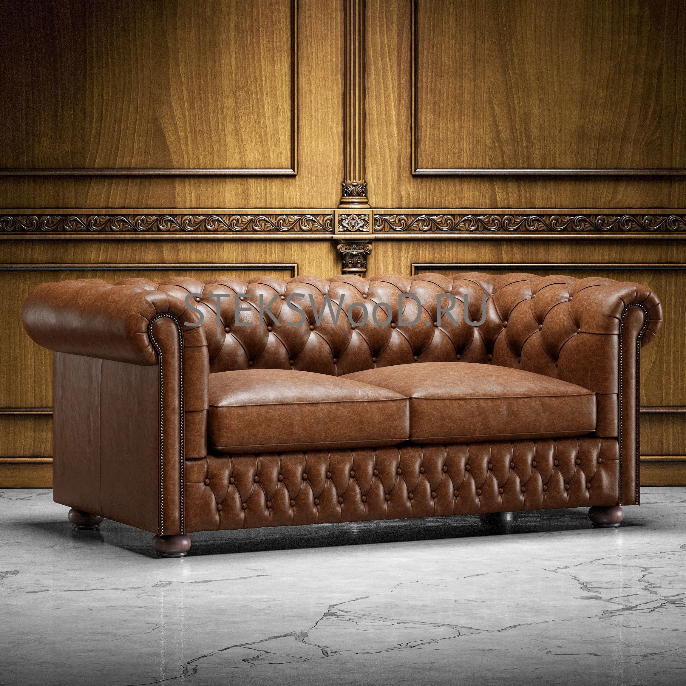Двухместный диван «Честер с подушкой» (Chesterfield) отлично подойдет как для классических, так и для современных интерьеров.