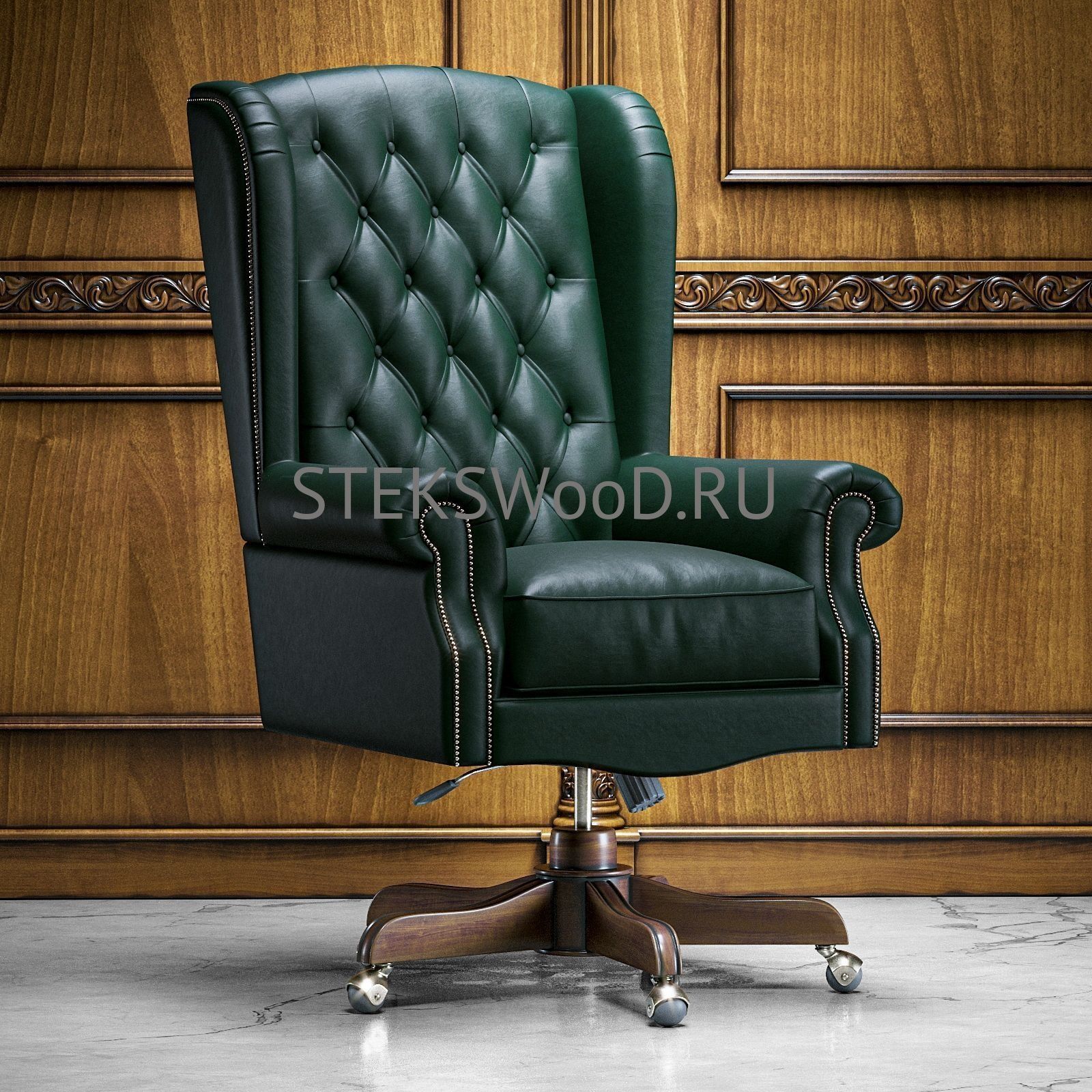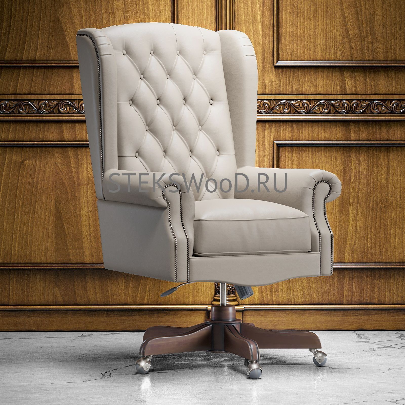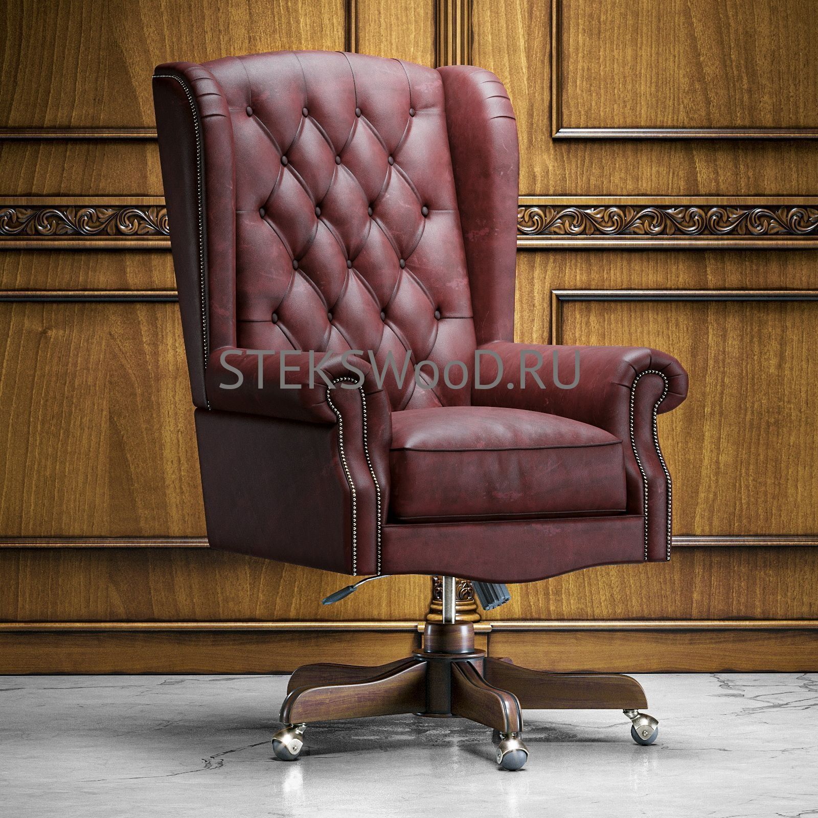 Кожаное кресло руководителя "ОКСФОРД МОРРО", коричневое, кожа антик, искусственное старение