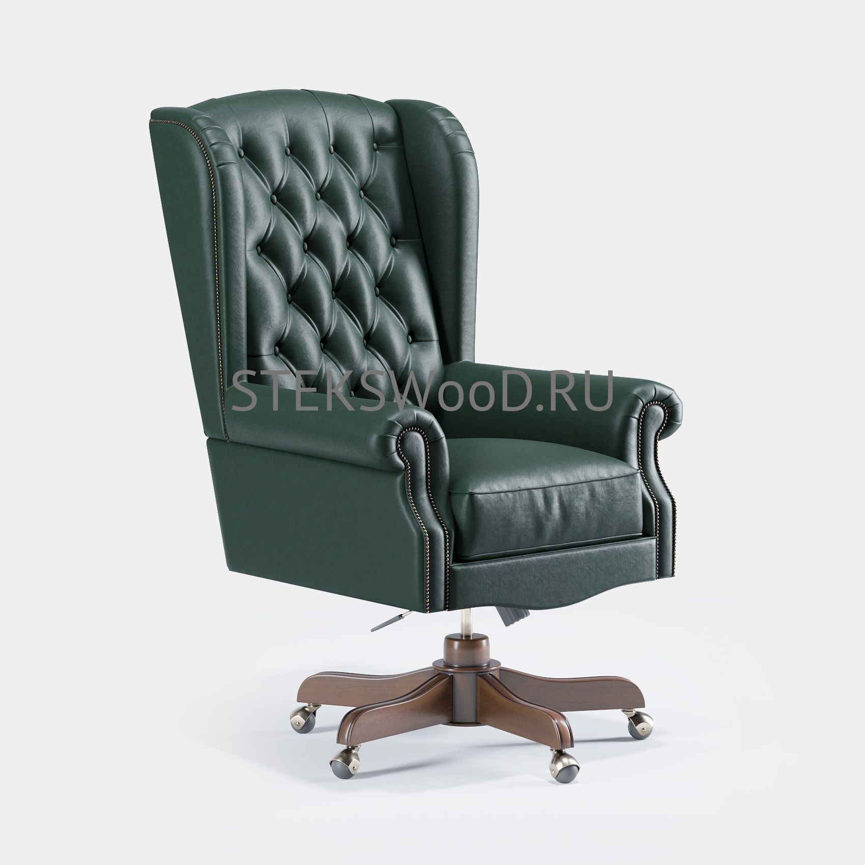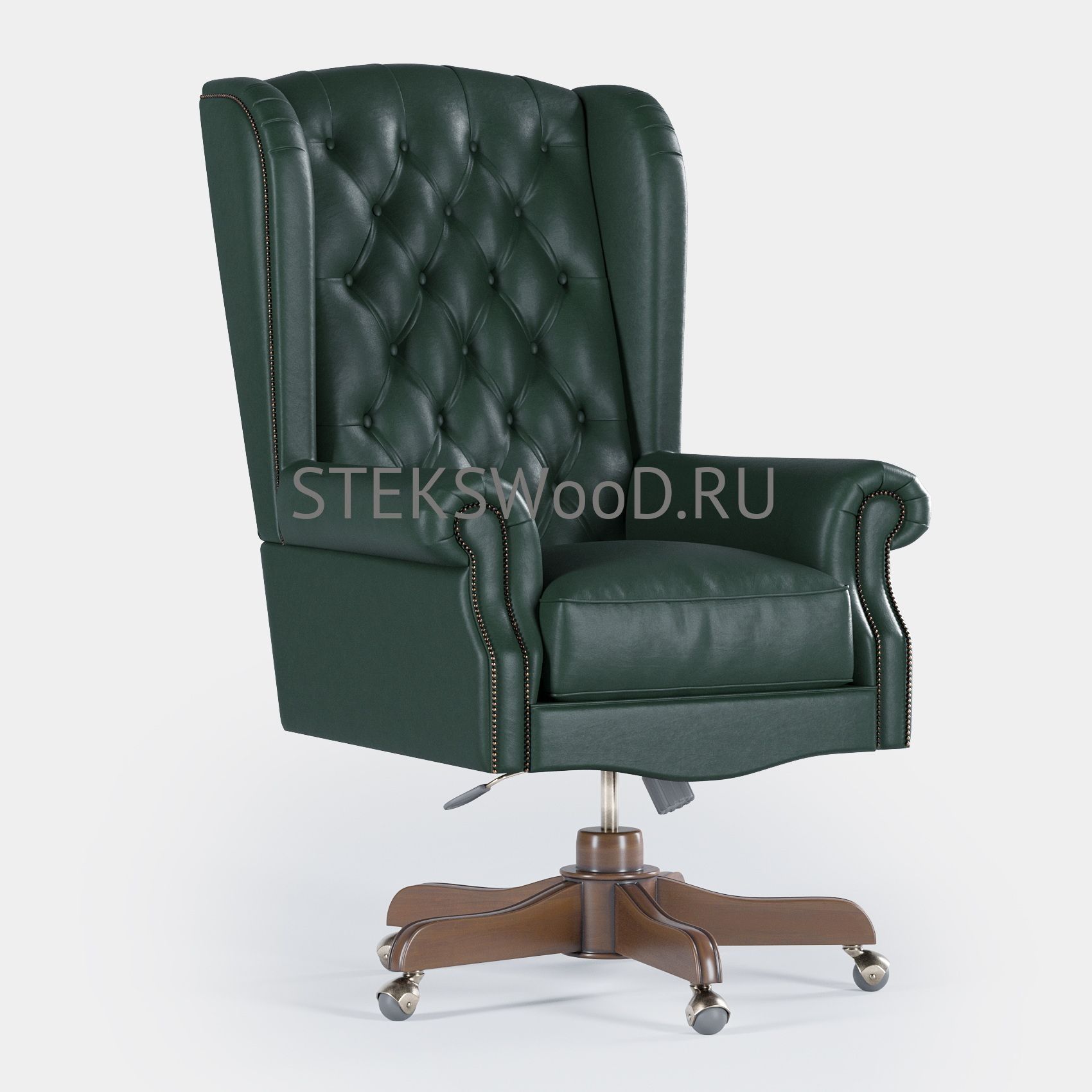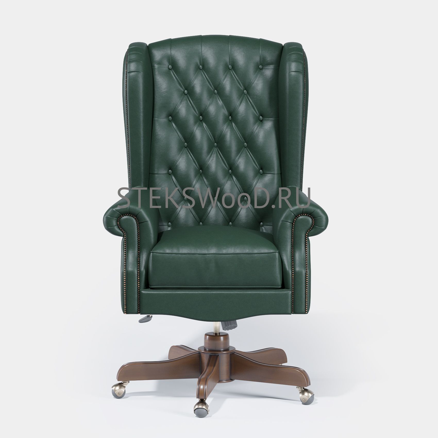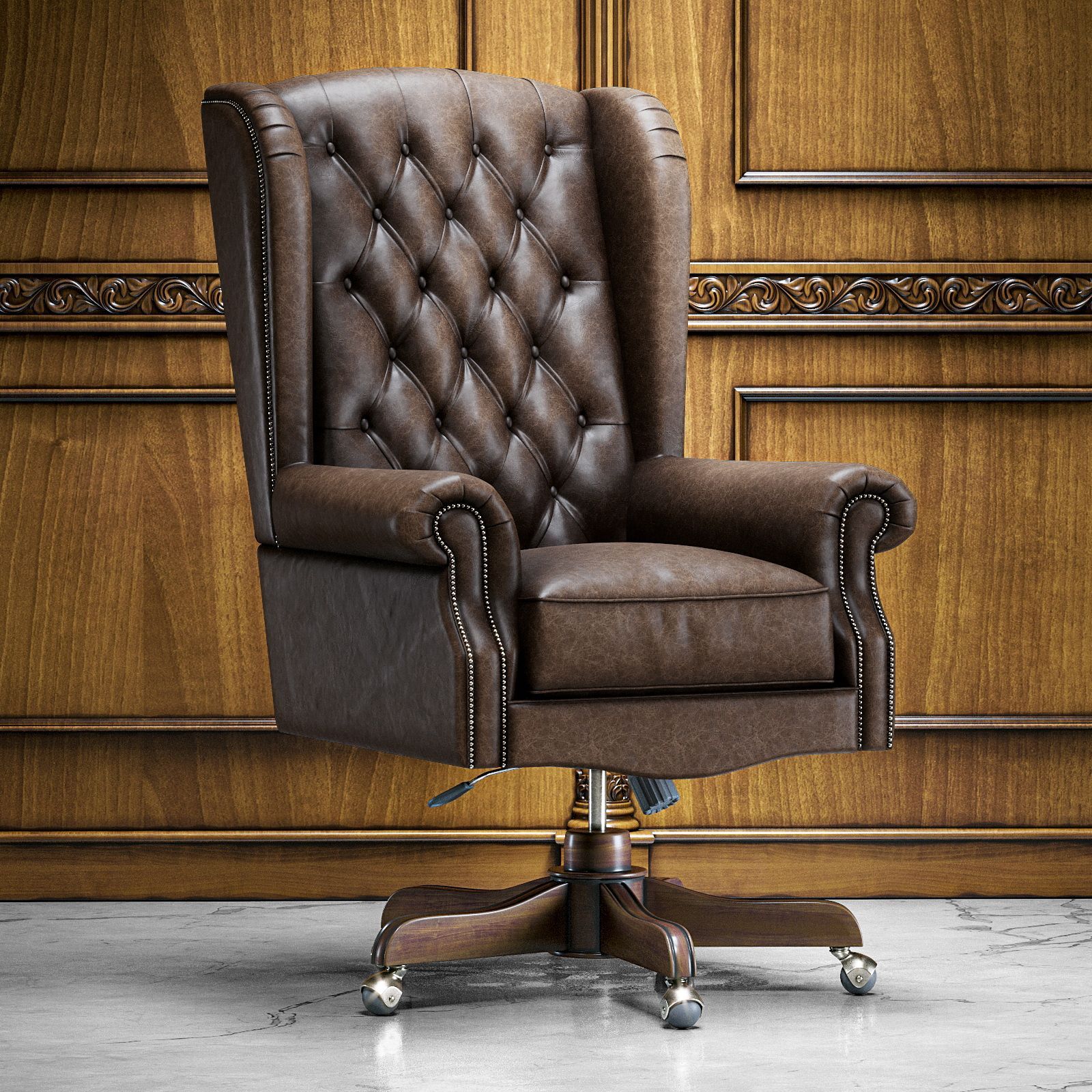 Кожаное кресло руководителя "ОКСФОРД МОРРО", коричневое, кожа антик, искусственное старение