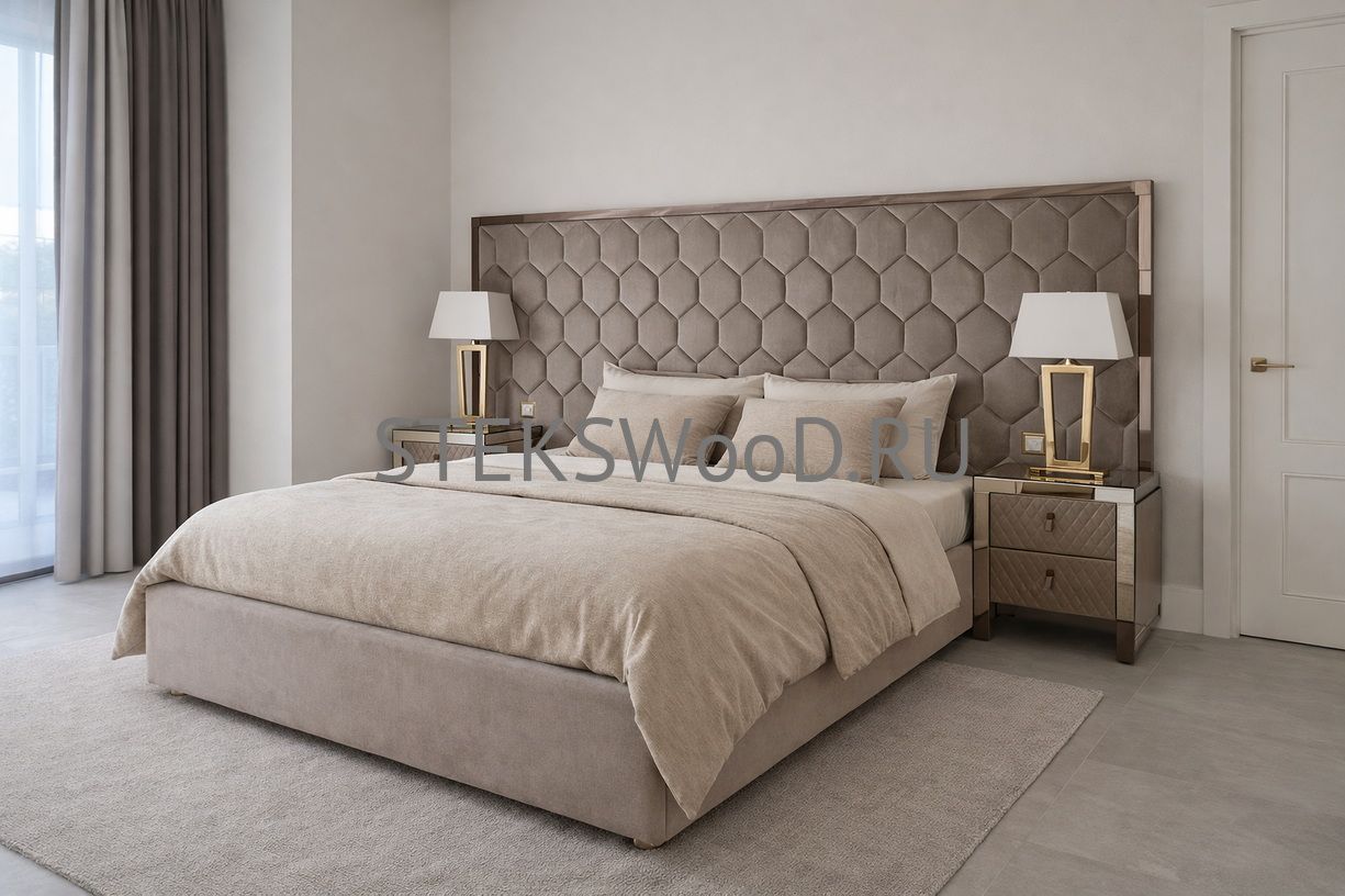 Возможно изготовление кровати по вашим индивидуальным размерам в любой выбранной обивке.