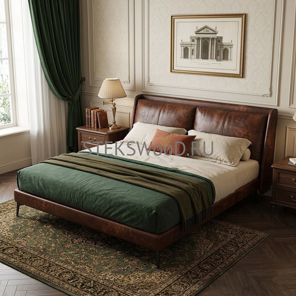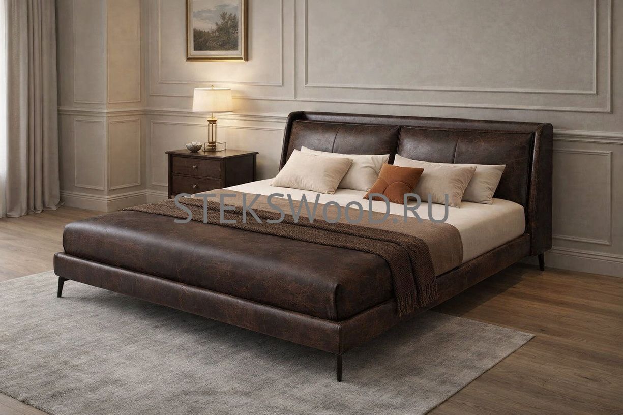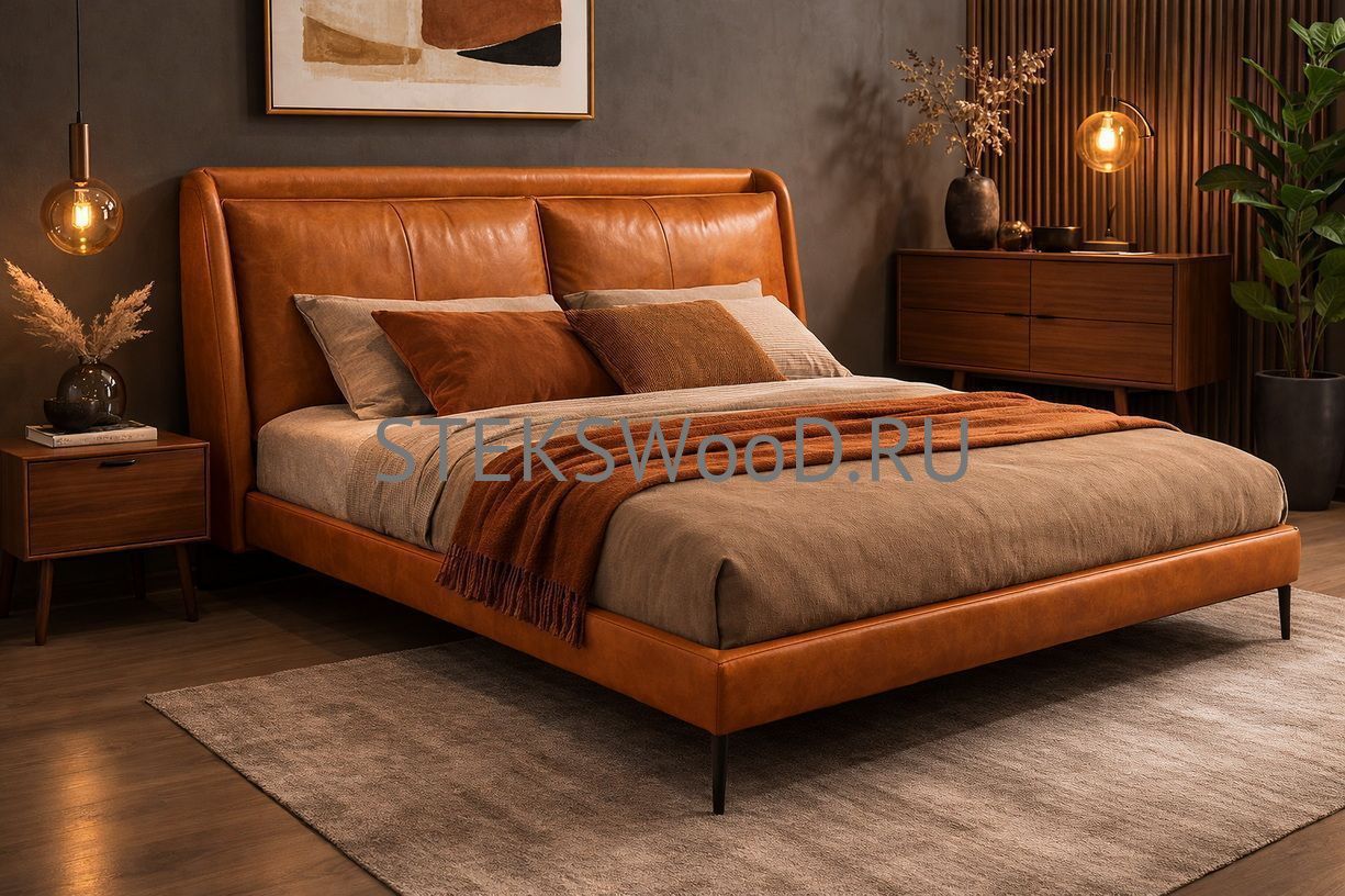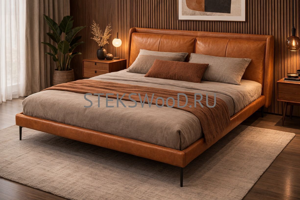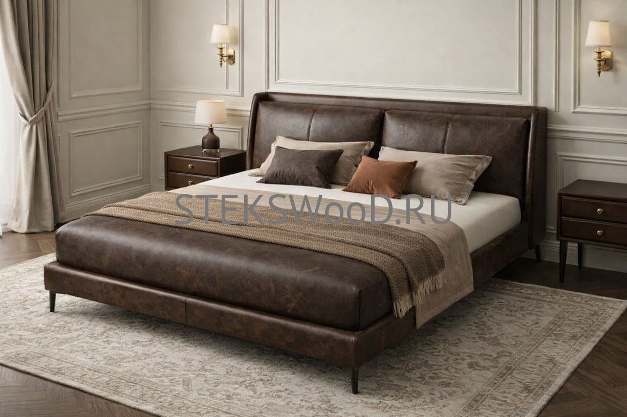 Премиальная кровать с обивкой из натуральной кожи на заказ