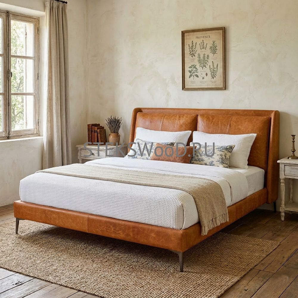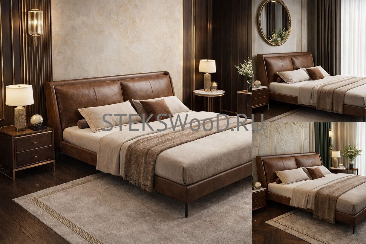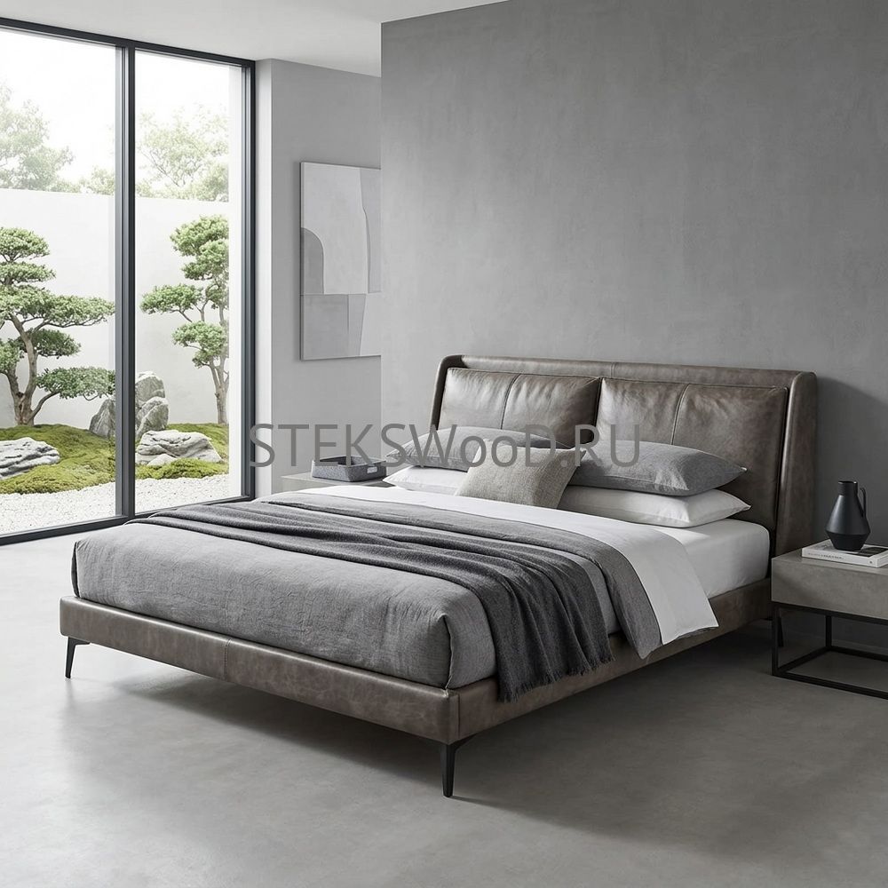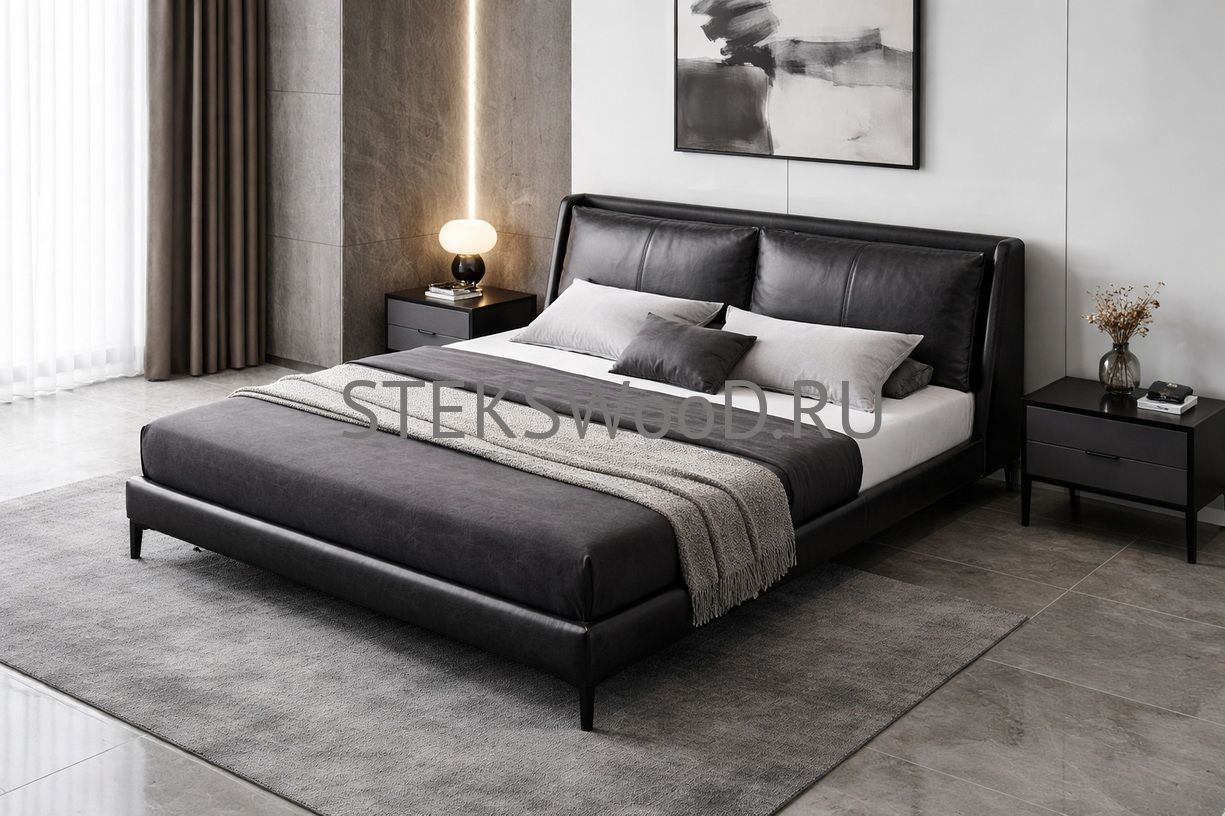 Премиальная кровать с обивкой из натуральной кожи на заказ