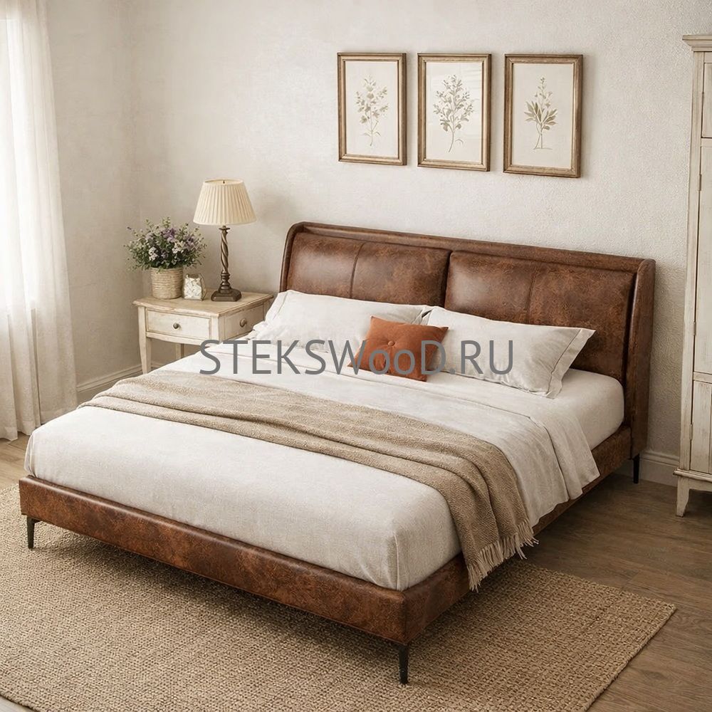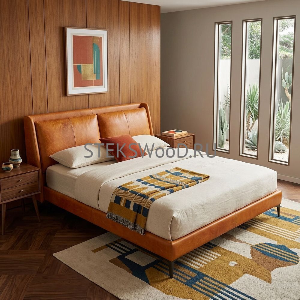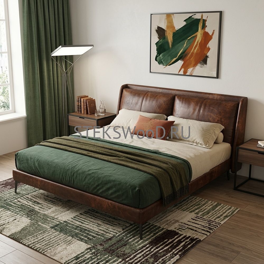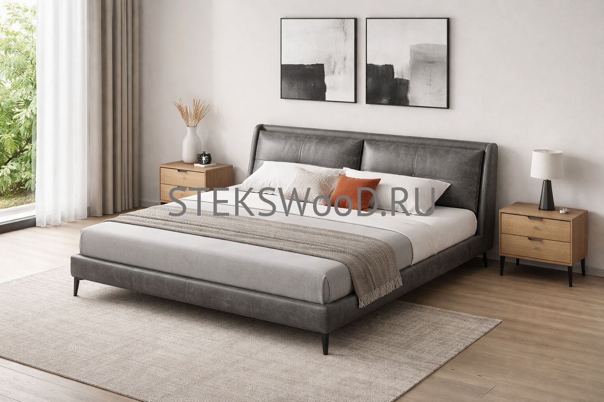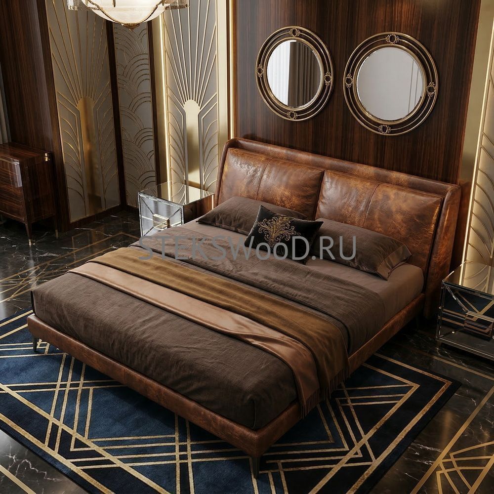 Премиальная кровать с обивкой из натуральной кожи на заказ