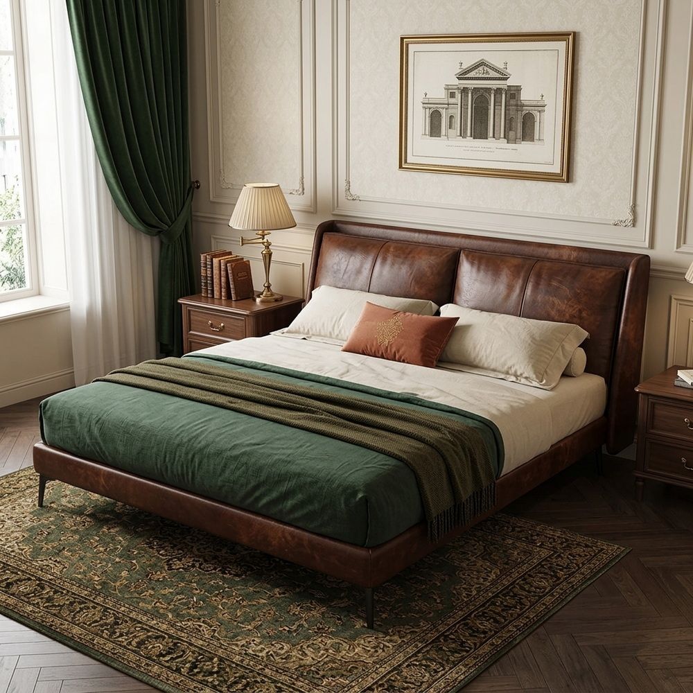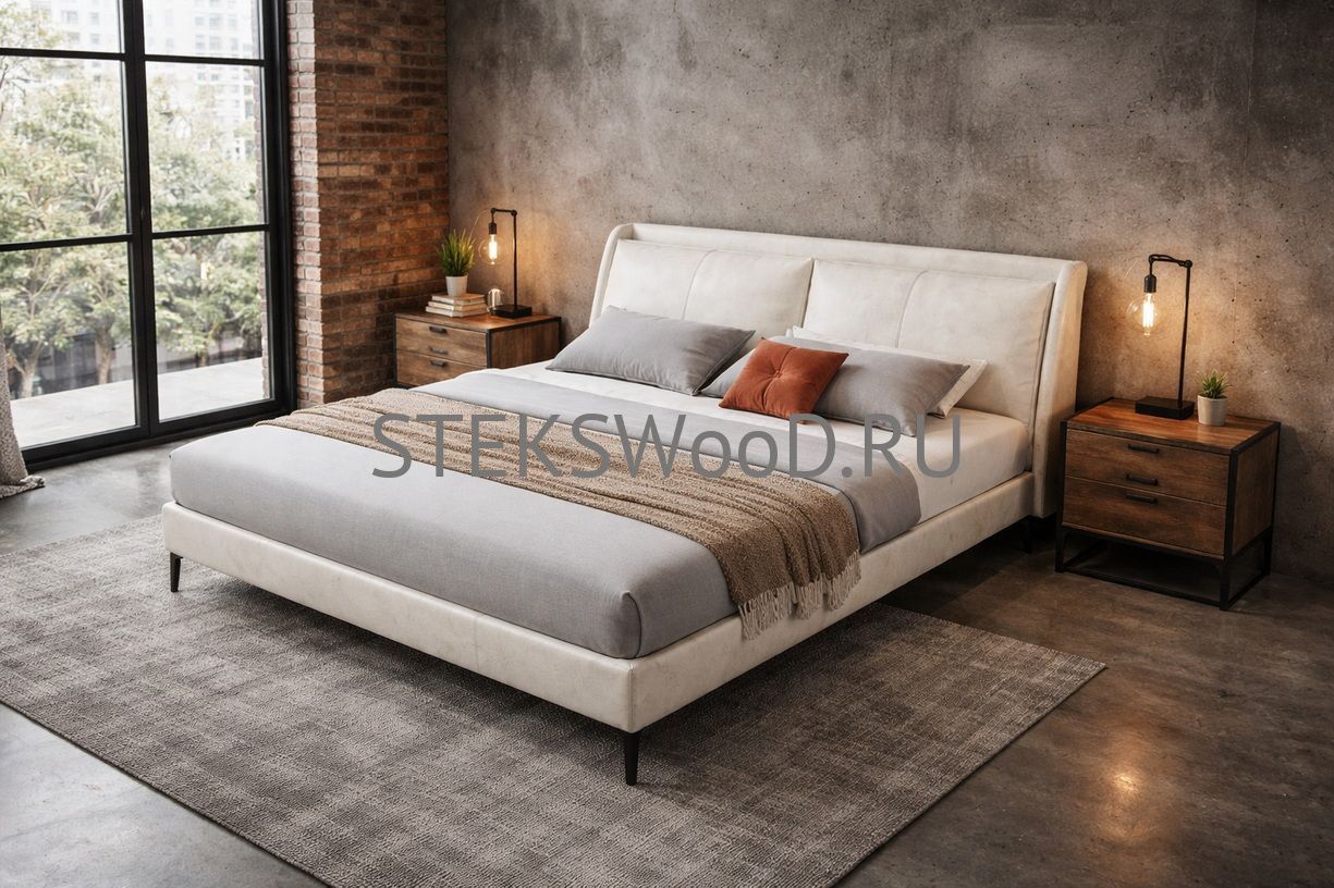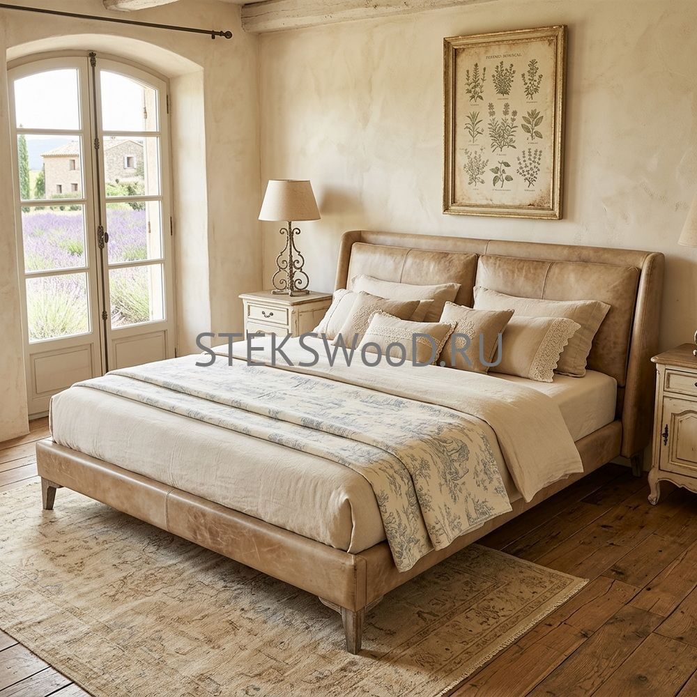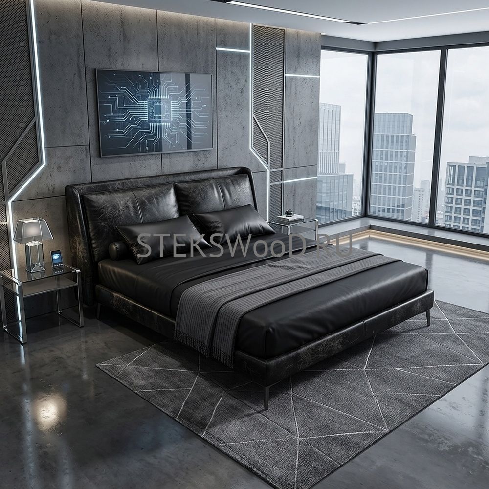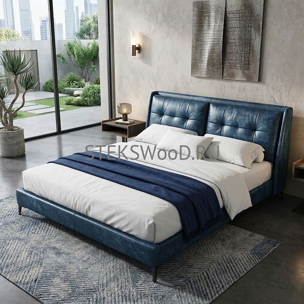 Премиальная кровать с обивкой из натуральной кожи на заказ