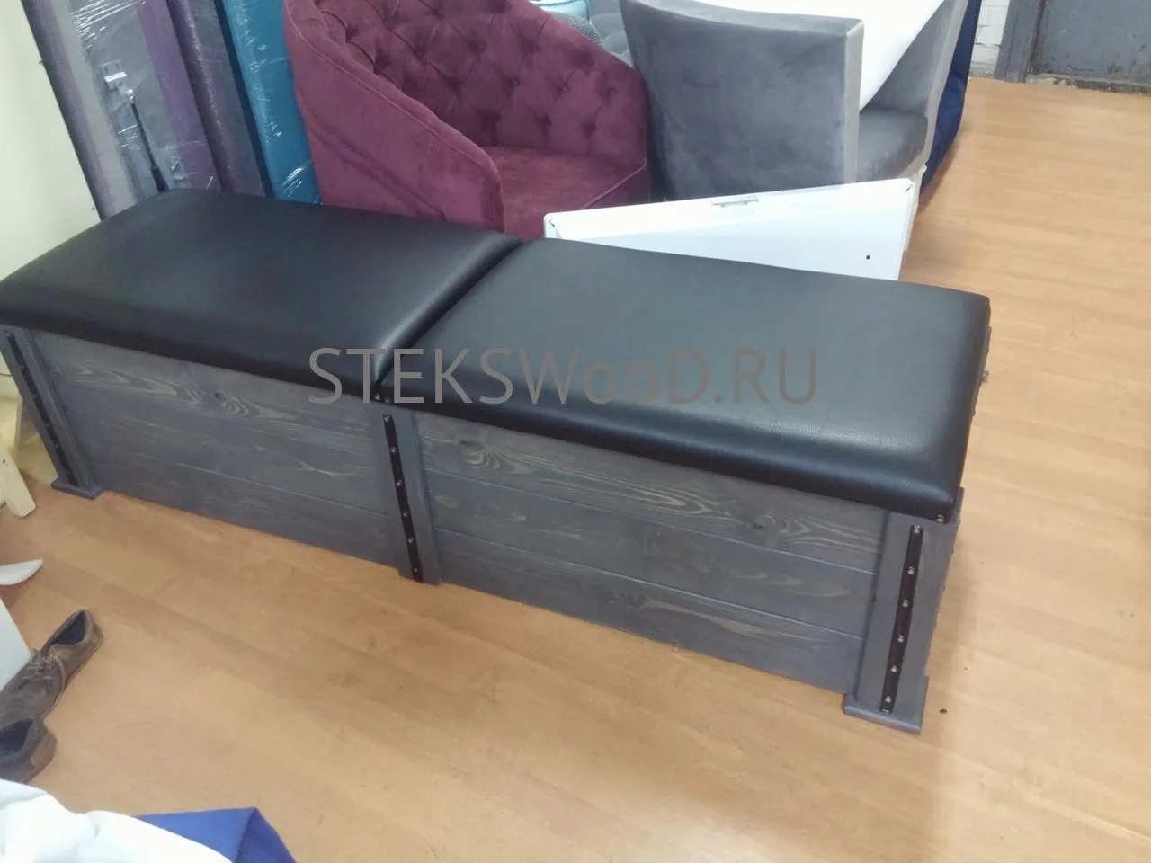 Надёжно запакованную мебель помещаем в деревянную обрешетку.
