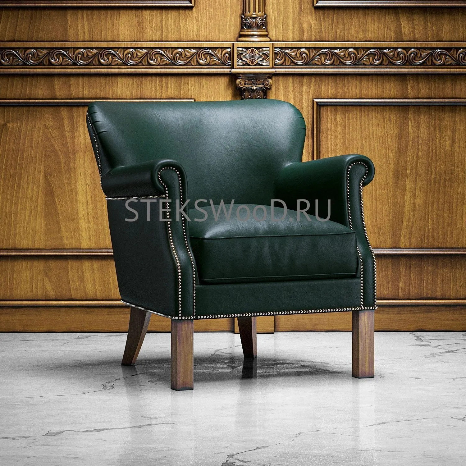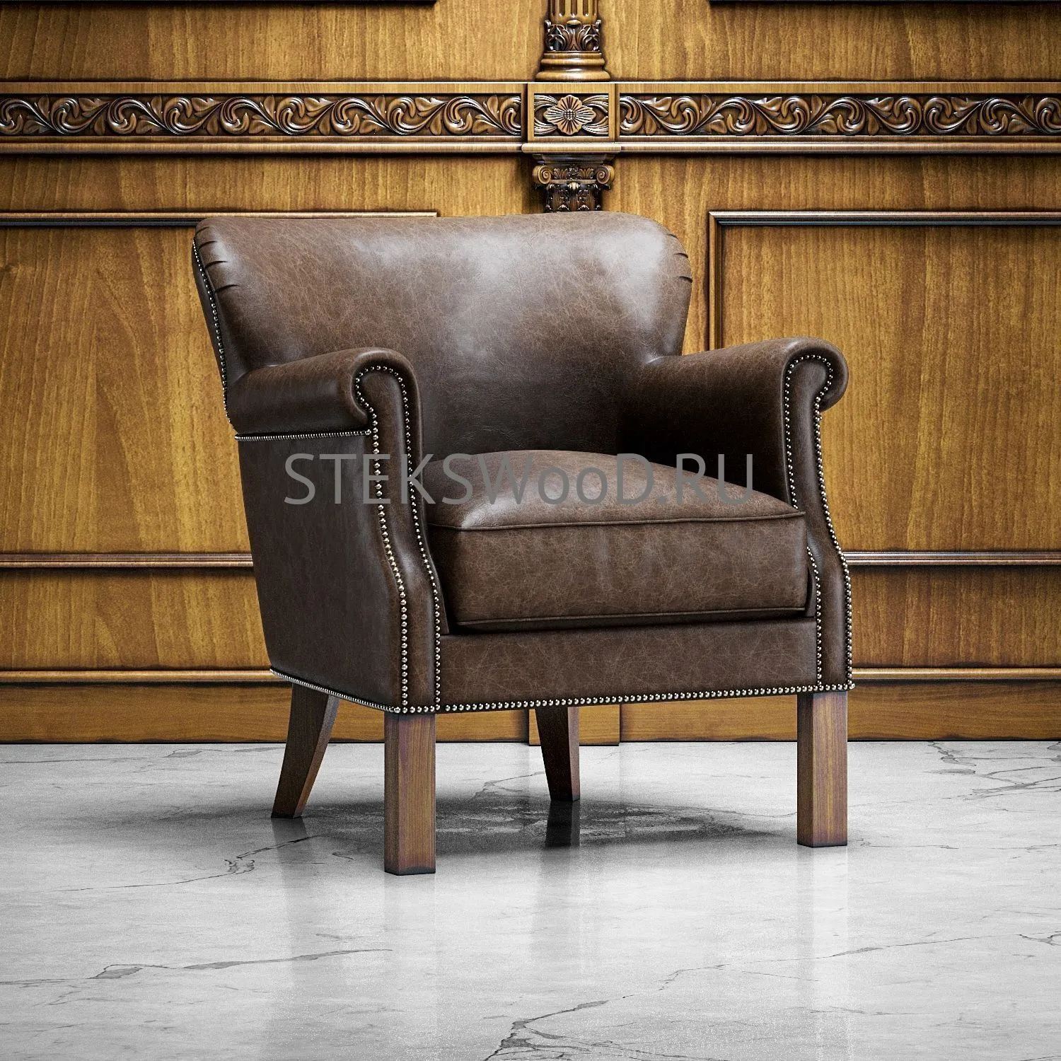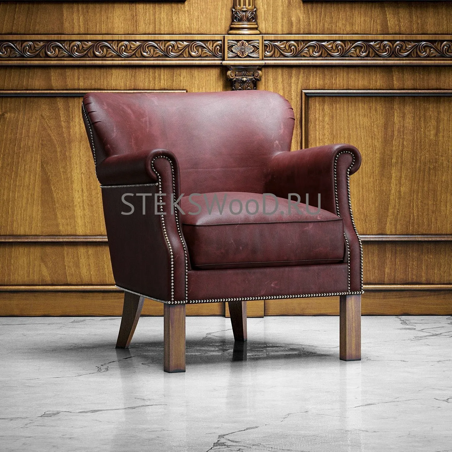 На фотографии кресло обито винтажной кожей Антик Канелла, с эффектом искусственного старения и вощением. Цена указана в данной коже.